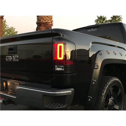Product Name: Recon GMC Sierra 1500 16-18 | 2500/3500 16-19 (Fits Single Wheel Only) Tail Lights OLED in Dark Red SmokedManufacturer: ReconManufacturer Part #: 264298RBKThoroughbred Diesel Part #: REC264298RBK