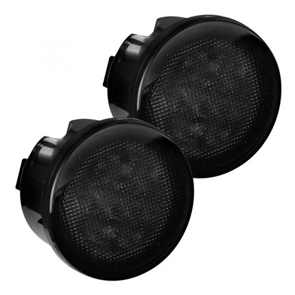 RECON Part # 264134BK - LED FENDER LIGHT - Jeep 07-18 JK Wrangler Round Front Turn Signal Lenses with Amber LED's Located Under Front Headlights - Smoked Lens