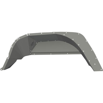 Road Armor Stealth Front and Rear Steel Inner Fender Liners are rugged and loaded with added utility. Specifically designed to replace the factory plastic inner liners of your Jeep Wrangler, this masterpiece of metal protects and reinforces the inner fenders of your Jeep Wrangler while allowing room for larger tires. This two-piece design directly bolts to the body using steel hardware and works with factory fender flares or most aftermarket fenders. Sold in Pairs.