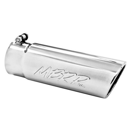MBRP 4" Pro Series diesel systems come complete with dual walled angle tips. For the "Cool Duals" they are the angled T5053 and the single has a straight cut T5049. The XP and Installer Series have our T5051 angled rolled end tips. MBRP Performance Gas, Muscle car and Jeep exhaust have a variety of tip designs to suit the style and application. In all cases the tips are mirror polished T-304 stainless steel save for our Black series systems which have a coated black tip. MBRP 5" diesel, Performance series and PLM systems do not have a tip included nor do systems with a turn down tail.