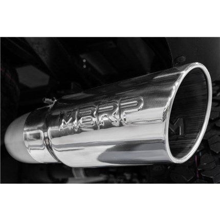 MBRP 4" Pro Series diesel systems come complete with dual walled angle tips. For the "Cool Duals" they are the angled T5053 and the single has a straight cut T5049. The XP and Installer Series have our T5051 angled rolled end tips. MBRP Performance Gas, Muscle car and Jeep exhaust have a variety of tip designs to suit the style and application. In all cases the tips are mirror polished T-304 stainless steel save for our Black series systems which have a coated black tip. MBRP 5" diesel, Performance series and PLM systems do not have a tip included nor do systems with a turn down tail.
