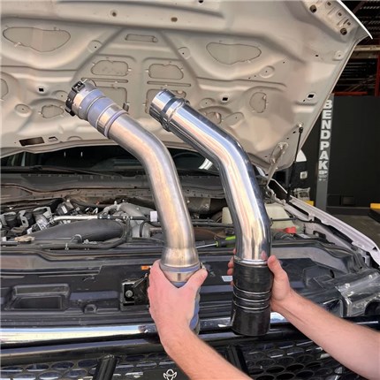 The S&B Hot Side Intercooler Pipe replaces the failure-prone OEM intercooler pipe that is known to come apart and leak.