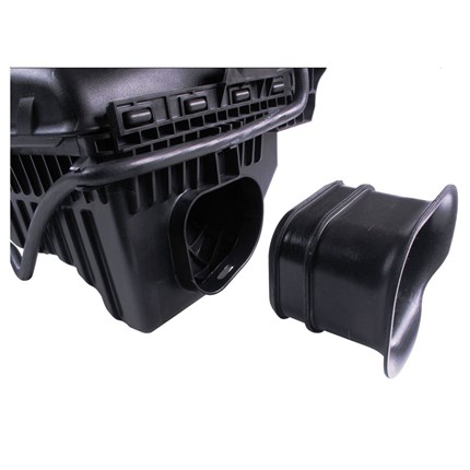 The stock inlet is small and restrictive. We custom molded a rubber inlet with a generous radius to reduce the restriction of air as it enters the intake box. A 48% improvement over stock.