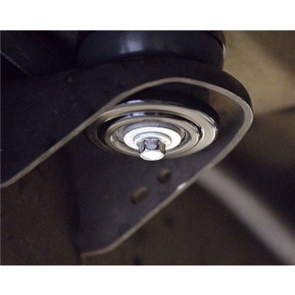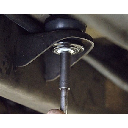 The cap bushings have a distinct boss feature on it that matches the slot on the mounting tabs. They are designed to key into the frame tab and give it an OEM fit. Your family will be safer. Ford, Chevy, and Dodge instruct dealers to only use new bolts once body mounts are removed. The reality is that most dealers just reuse the same bolts to save you money, which could cause the cab and frame to separate. All S&B body mount kits comes with OEM designed bolts, so the dealer has no reason to reuse the old bolts. Cap fits precisely in the frame tab for an OEM fit.