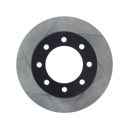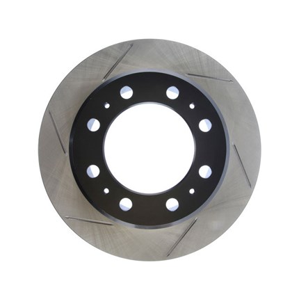StopTech Slotted Sport Rotors are 1-piece direct replacement brake discs for factory brake systems and stock calipers that look great behind your wheels - and offer significantly improved braking performance. The unique slotting aids with heat and brake dust dispersal; prevents glazing of the pads; adds bite and improves wet and dry braking performance. Built to last; the black e-coating provides protection from corrosion and the high carbon metallurgy (in most applications) offers quieter operation; better crack resistance and increased performance.