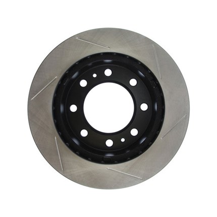 StopTech Slotted Sport Rotors are 1-piece direct replacement brake discs for factory brake systems and stock calipers that look great behind your wheels - and offer significantly improved braking performance. The unique slotting aids with heat and brake dust dispersal; prevents glazing of the pads; adds bite and improves wet and dry braking performance. Built to last; the black e-coating provides protection from corrosion and the high carbon metallurgy (in most applications) offers quieter operation; better crack resistance and increased performance.