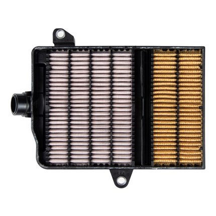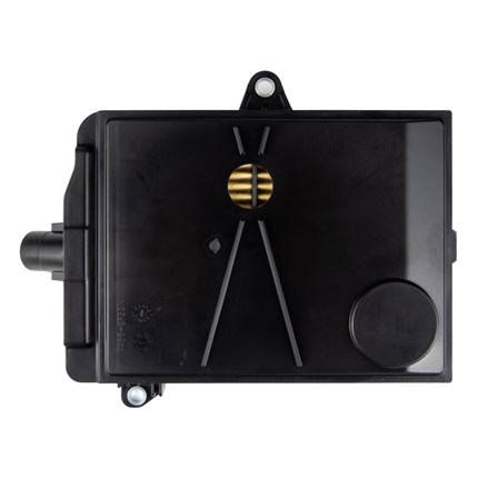 This 10R80 transmission has a newly designed filter has two types of media: fine and course. The course medium is common in most filters (orange filter paper), while the fine filtration (White paper) is the newer material. There is a thermal plate inside the filter that separates the course and fine media. When the oil is colder (higher viscosity) at startup, the fluid will flow through both the fine and course filter media.