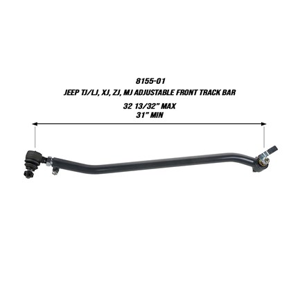 Product Name: Synergy Jeep TJ/LJ, XJ, ZJ, MJ Adjustable Front Track Bar - 1997-2006 Jeep Wrangler (TJ) | 2004-2006 Jeep Wrangler (LJ) | 1987-2001 Jeep Cherokee (XJ) | 1993-1998 Jeep Grand Cherokee (ZJ) | 1987-1992 Jeep Comanche (MJ) Manufacturer: Synergy Manufacturer Part #: 8155-01 Thoroughbred Diesel Part #: SYN8155-01 Fitment Notes: 1997-2006 Jeep Wrangler (TJ) | 2004-2006 Jeep Wrangler (LJ) | 1987-2001 Jeep Cherokee (XJ) | 1993-1998 Jeep Grand Cherokee (ZJ) | 1987-1992 Jeep Comanche (MJ)