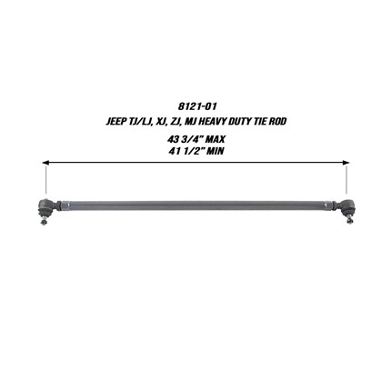 Product Name: Synergy Heavy Duty Tie Rod - 1997-2006 Jeep Wrangler (TJ) | 2004-2006 Jeep Wrangler (LJ) | 1987-2001 Jeep Cherokee (XJ) | 1993-1998 Jeep Grand Cherokee (ZJ) | 1987-1992 Jeep Comanche (MJ) Manufacturer: Synergy Manufacturer Part #: 8121-01 Thoroughbred Diesel Part #: SYN8121-01 Fitment Notes: 1997-2006 Jeep Wrangler (TJ) | 2004-2006 Jeep Wrangler (LJ) | 1987-2001 Jeep Cherokee (XJ) | 1993-1998 Jeep Grand Cherokee (ZJ) | 1987-1992 Jeep Comanche (MJ)