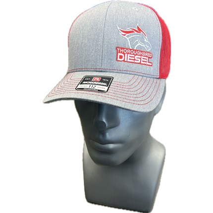 Heather Gray Bill and Front, Red Mesh White and Red Logo.