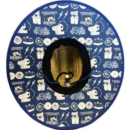 Introducing the Thoroughbred Diesel Custom Straw Sun Hat - the ultimate blend of style, functionality, and diesel power pride! Whether you're soaking up the sun at a diesel event, working in the garage, or just enjoying some outdoor leisure time, this hat is your perfect companion. Design: Crafted with meticulous attention to detail, our custom straw sun hat showcases the iconic Thoroughbred Diesel spirit. The rich, Thoroughbred blue trim beautifully accents the hat's overall aesthetic, making it a standout piece in your collection. Signature Patch: Atop this one-of-a-kind hat, you'll find a striking blue and white Thoroughbred Diesel patch, proudly displaying our logo. It's a symbol of our commitment to excellence and performance in the diesel world. Beneath the Brim: But it doesn't stop there! The true magic of this sun hat lies beneath the brim. We've incorporated a custom design that's a diesel enthusiast's dream. Featuring intricate illustrations of key components such as transmissions, torque converters, fuel injections, lift pumps, turbochargers, CP3 pumps, and clutches, this design showcases the heart of diesel power.