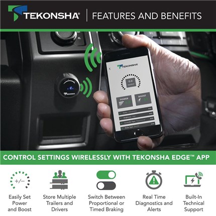 The Tekonsha Prodigy iD trailer brake controller gives you dynamic braking power when you need it most. As the industry’s most advanced brake controller and a true proportional braking system, the iD provides a smooth braking response in any stopping situation. Wrapped in a sleek, OEM style design, this advanced electric brake controller has a soft-touch rotary-style knob that controls settings and trailer braking activity while the highly visible forward-facing push button color LED display provides easy-to-read real time diagnostics and alerts. The Prodigy iD allows you to easily set power output and boost, choose and switch between proportional and timed braking, electric or electric over hydraulic braking, and more, right from the driver’s seat! Fingertip control of the rotary-style knob makes engaging manual override quick and easy too. The seamlessly integrated in-dash appearance keeps your dashboard clean while the brains of this electric brake controller - otherwise known as the power module - are secured safely behind the dash, out of sight and safe from outside elements. The Prodigy iD trailer brake controller features the latest innovations, utilizing Bluetooth wireless technology to connect to any mobile device, putting complete control in the palm of your hand! Simply download the Tekonsha EDGE mobile app onto your smartphone or tablet through the app store or Google Play. Wirelessly connect your installed Prodigy iD to the EDGE app and you’re ready to tow. The Tekonsha EDGE app allows you to create and store multiple trailer settings and driver preferences and make adjustments to any and all settings as needed. The app also offers built-in support from Tekonsha’s knowledgeable technical support team, along with a log of notifications and alerts so you can easily reference them as needed. The Prodigy iD works with 2, 4, 6, and 8 brake (1-4 axles) trailer brake applications, comes with all necessary mounting hardware, and is backed by a limited lifetime warranty.