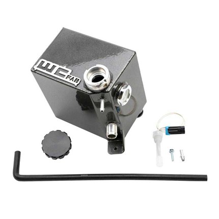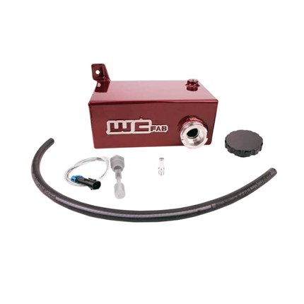 WC Fab Fabricated Aluminum Coolant Tank Kit for single turbo applications, mounts in OEM coolant tank location.
