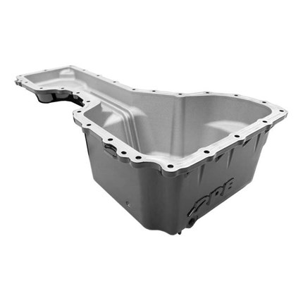 WCFab X PPE's 2020-2025 L5P Duramax High-Capacity Cast Aluminum Engine Oil Pan replaces the poorly draining stock oil pan with this flat bottom high capacity oil pan. The stock pan has a valley in the pan that retains over half a quart of your dirtiest oil and immediately contaminates fresh oil. PPE engineered this deep pan with a flat, angled bottom for more complete drainage.
