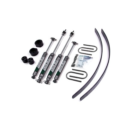 Take your Jeep XJ up a notch with this 2" lift kit from Zone Offroad. This kit includes everything needed from polyurethane coil spacers and bolt-in bump stop extensions to a rear add-a-leaf kit and u-bolts to level the stance. Get the look, performance, and capability your truck deserves with clearance for larger tires.