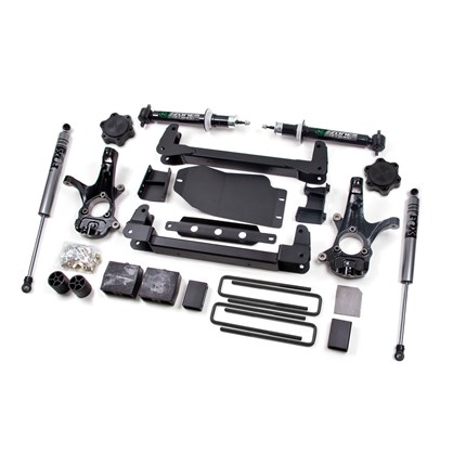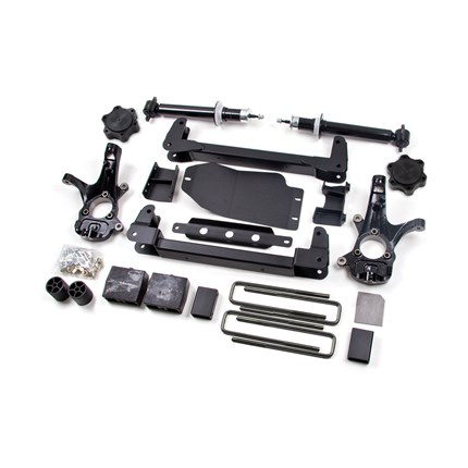 Take your Silverado/Sierra 1500 to new heights with this 6.5" lift kit from Zone Offroad. Kits include everything needed from high strength crossmembers and steering knuckles to nitro gas struts and and rear block kit to level out the stance. Get the look, performance, and capability your truck deserves with clearance for up to 35" tires.