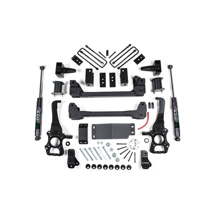 Take your F150 to new heights with this 6" lift kit from Zone Offroad. Kits include everything needed from high strength crossmembers and steering knuckles to strut spacers and rear block kit to level out the stance. Get the look, performance, and capability your truck deserves with clearance for up to 37" tires.