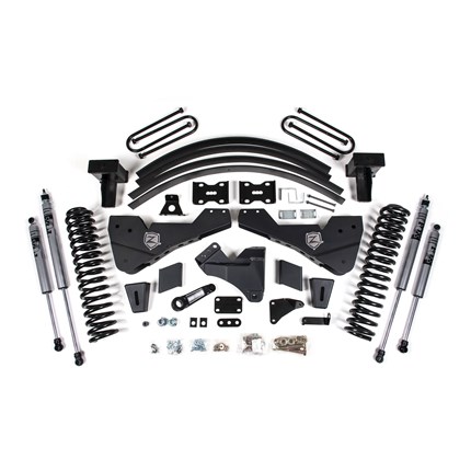 Take your Super Duty to new heights with this 8" lift kit from Zone Offroad. Kits include everything needed from full length coil springs and stout radius arm relocation brackets to steering correction and rear block + add-a-leaf kit. Get the look, performance, and capability your truck deserves with clearance for 38" tires.